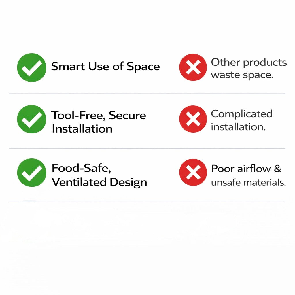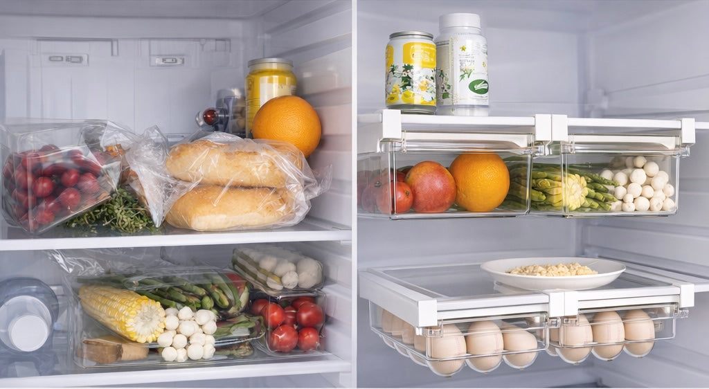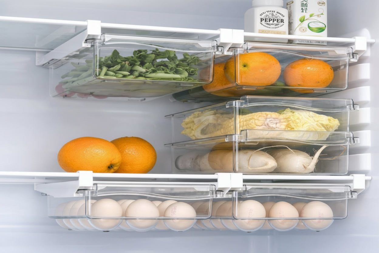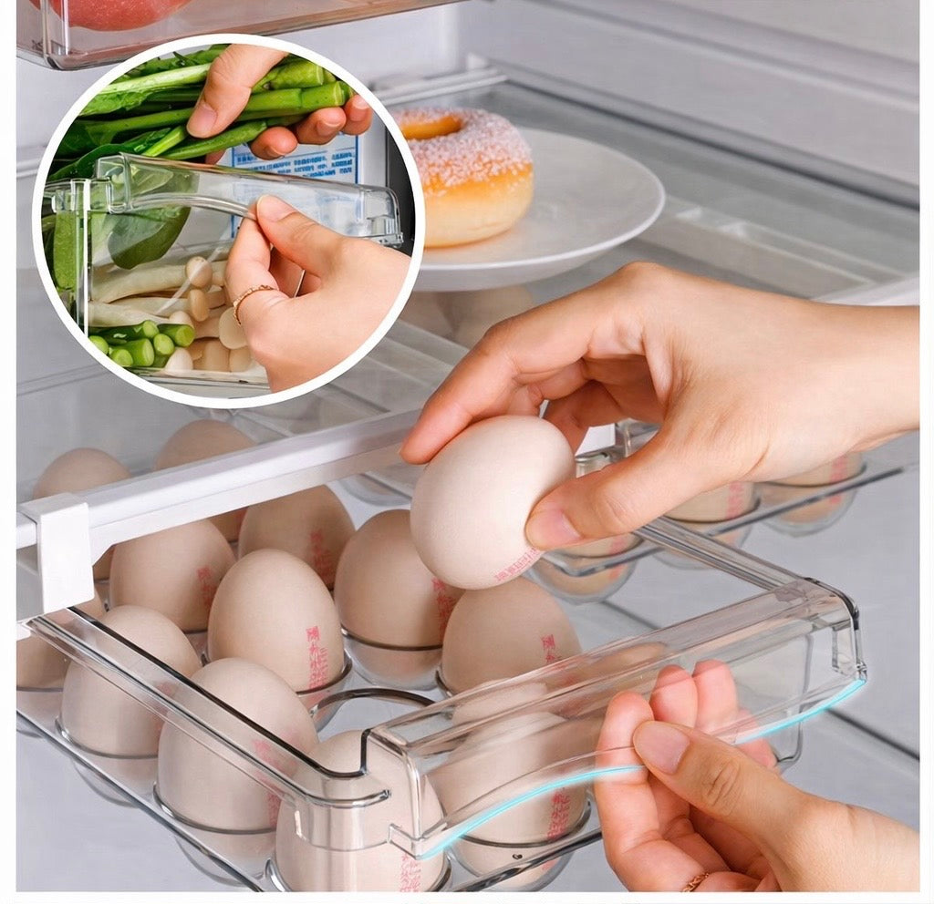 No more forgotten food at the back. No more cluttered shelves — just a smarter way to store fruits, eggs, snacks, and everyday essentials while maximizing every inch of your fridge.